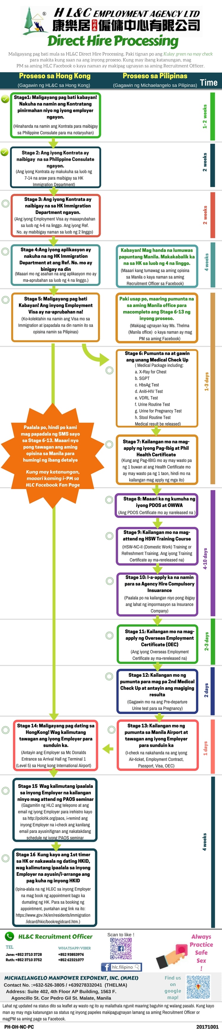 Extensive Filipino network in Hong Kong means that it is easy for OFWs in Hong Kong or at home in the Philippines to reach a hiring agreement with a new employer. If you have found yourself an employer already and is currently looking for a processing agent, KL is your best choice because we ensure your new employer should pay for all your fees (Note 1) while you are FREE from placement fees at Hong Kong and the Philippines!!!