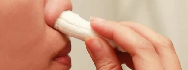 - Let the patient breath through his mouth, while pinching the soft part of the nose.